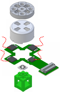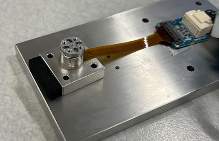 We combined MEMS PRT technology with a metal flexural structure to create a simple, reliable and cost effective sensor. The MMS101 utilizes six analog front end (AFE) ICs and one MEMS PRT dies providing digital SPI interface fully calibrated output. Correction coefficients used for matrix operation (removal of interference components from other axes) are stored in the AFE IC memory, and can be read prior to the start of measurement which eliminates the need for users to control the sensor and coefficients for correction. Built-in linear regulators (LDO) reduce noise to provide high resolution signals. Weighing only 3 grams and having a diameter of 9.6 mm, the MMS101 is suitable for force (as low as 0.04 Newton) and torque measurements within the fingertips of robotic hands.